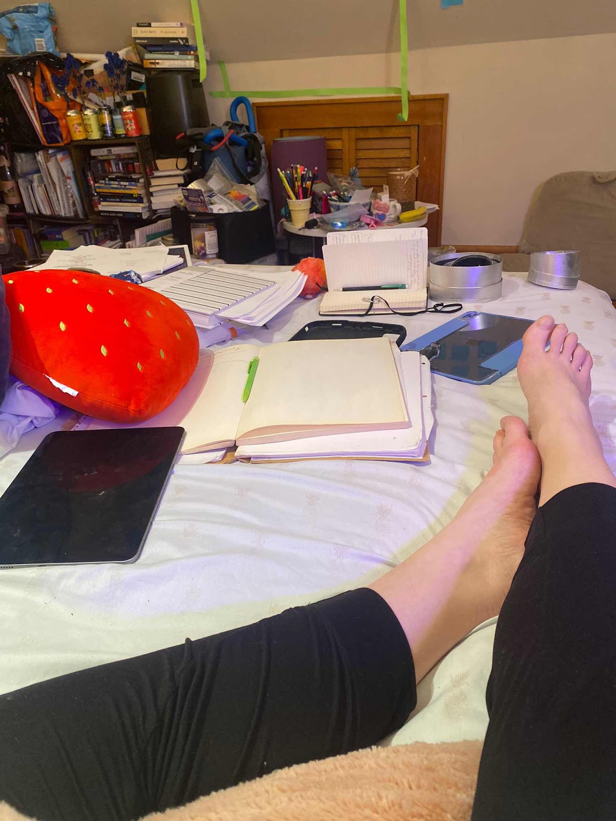 I did this meme and others like it when I was first regularly blogging, back in the mid-to-late 00s. This photo is what I have in my extra, change-of-clothes-after-hot-yoga bag (which is that folded up, blue & cream-colored oceanic print fabric pile in front of the water bottle).